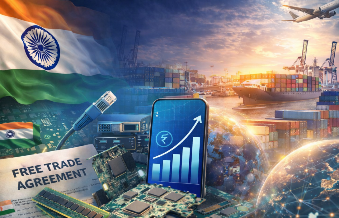 These agreements aim to improve market access and strengthen India’s electronics and high-tech exports globally.